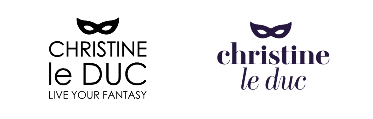 Het iconische masker hebben we gehouden, want het staat voor verleiding en onthulling. De onthulling van jouw eigen, geweldige zelf! Het logo past dus perfect bij wat Christine le duc wil uitstralen: Transformatie, vernieuwing, vrijheid, elegantie en liefde.